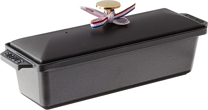 This cast iron terrine is perfect for making appetizers, roulades, pâtés, and of course terrines. Bake terrine in a water bath until thermometer inserted diagonally through foil at least 2 inches into center of terrine registers 155 to 160°f, 1 3/4 to 2 hours. 4.7 out of 5 stars. Cover the dough leave to rise for another 30 min. The tight fitting handled lid helps keep food hot or cold until served, and may also be used as a trivet. The pan's durable cast iron construction boasts impressive heat retention and distribution for delicious cooking results every time. From comfort food to sumptuous suppers, every dish is special when served in staub. Made in france, the staub cast iron terrine is great for making authentic french terrine, rillettes and pâté as well as meatloaf, bread and lasagna. Just look for the staub seal on every product. The terrine is most popular for cooking layered dishes, such as foie gras, meatloaf, bread pudding, and similar meals. Small black terrine with 2 handles for a good grip. Born in alsace, a french region known for its craftsmanship and cuisine, our cast iron cookware bring a taste of authenticity to every meal. Staub's rectangular terrine made of durable cast iron is a practical kitchen aid for both amateur and professional cooks.